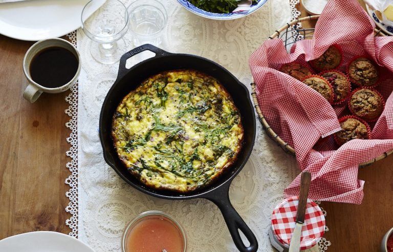 Warum wir es lieben: Wenn Sie eine Frittata zum Frühstück zubereiten, haben Sie die Eier, die Sie lieben, ohne den ganzen Morgen über dem Herd schweben zu müssen. Stattdessen können Sie Ihre Eier und Mischungen im Voraus verquirlen und dann eine Pyrex-Schale oder eine gusseiserne Pfanne mit Ihrer Frittata-Mischung in den Ofen stellen. Gießen Sie sich während des Wartens eine Tasse Kaffee ein – oder vielleicht eine Mimose. Diese Frittata ist es wert, gefeiert zu werden.