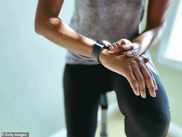 Individuals who have a wearable gadget like a Fitbit or Apple Watch that tracks their health progress stroll practically 2,000 extra steps a day and lose an additional two kilos for each 5 months of use (file photograph)