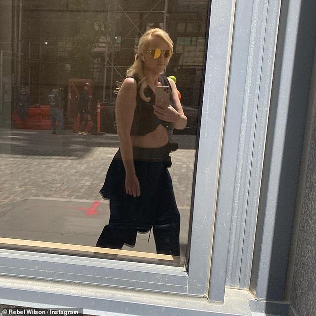 Within the selfie, which was captured with a window reflection, Insurgent flashed a glimpse of her naked abdomen in a crop prime and sweatpants as she walked down a metropolis road.