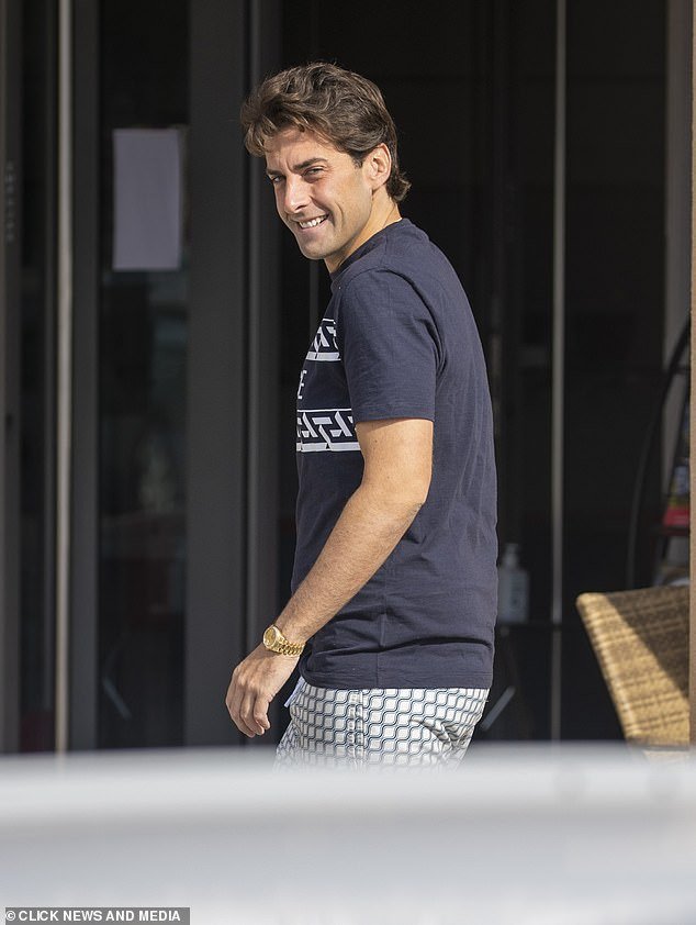 Trying good: The slimmed down James Argent continued to indicate off his dramatic weight reduction on Thursday as he stepped out for breakfast with a pal at Cafe Boulevard in Cala De Mijas, Spain