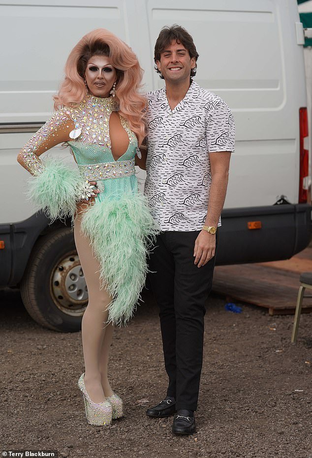 Needed: James Argent appeared in good spirits as he was greeted by legions of followers (pictured with drag queen Tess Tickle) at Angel Belief Girls Day in Sedgefield, County Durham on Sunday.