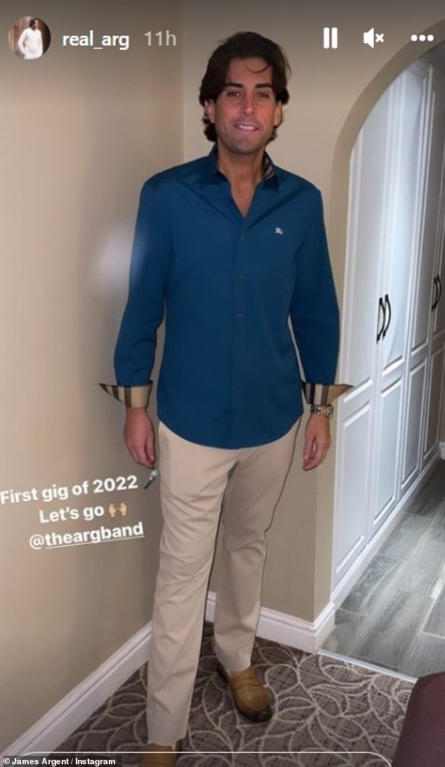 He completed off the smart-casual look with a pair of tan footwear and titled the recording: “First gig of 2022, let’s go @theargband.”