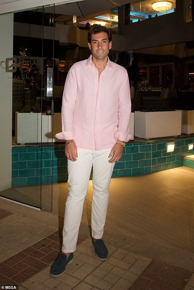 Trying good: James additionally wore white chinos and tossed his chocolate brown tresses again into their signature model for his look at former TOWIE star Elliot Wright’s restaurant