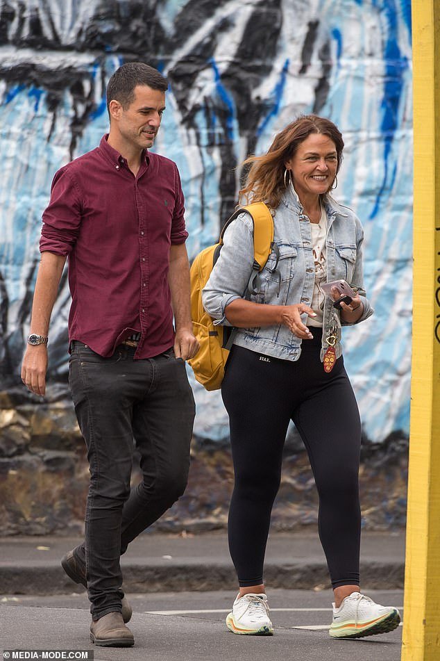 Pal: Chrissie Swan (proper) confirmed off her unimaginable weight reduction on Tuesday as she stepped out for breakfast with Nova 100’s head of programming Ben Latimer (left) in Melbourne.